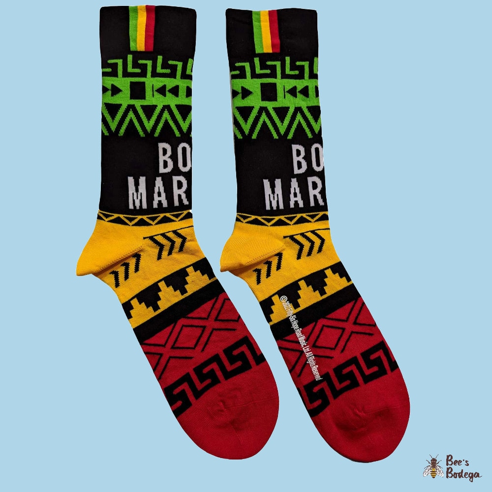 Bob Marley 'Press Play' socksHigh quality cotton mix, to fit UK sizes 7-10.An official ‘Bob Marley’ product.